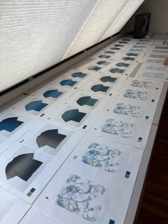 カラー展開は、水の流れをイメージした「水面」「深緑」(仮)の2色。時間や場所ごとに変化する水の流れを桐染のグラデ―ション染めで表現。
