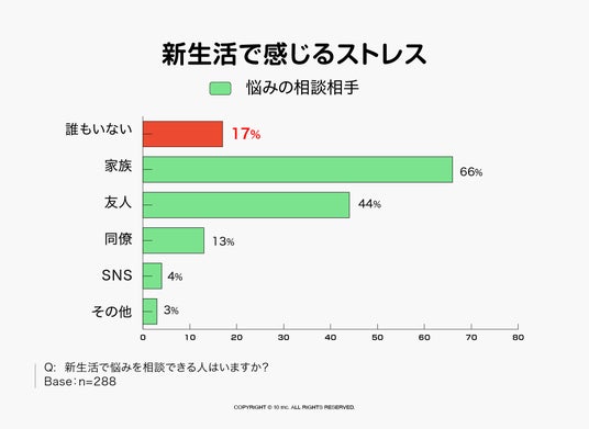 株式会社10(本社:東京都中野区、代表取締役:佐藤 尊紀、以下10 Inc.)は、運営する消費者オンラインコミュニティ「torio cafe」(288名)を対象に、「新生活に関する実態調査」を実施しました。