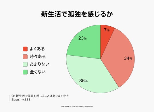 一方で、新生活における孤独感については、「よくある」(7%)「時々ある」(34%)と、合計41%が孤独を感じていることが明らかになりました。