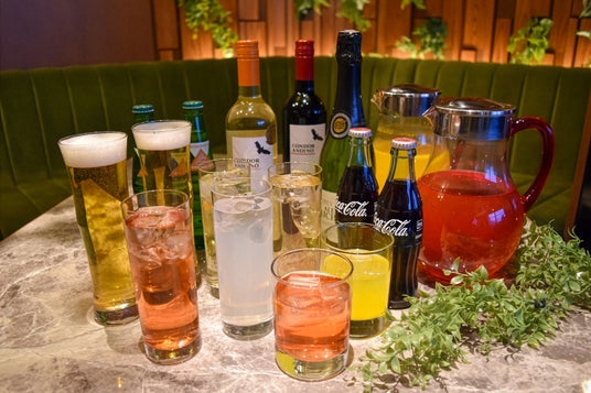 生ビール、ハイボール、レモンサワー、ワイン(赤・白・スパークリング)、ノンアルコールカクテル、ソフトドリンクなど