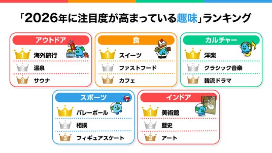 海外旅行や洋楽など、SmartNewsデータから見る「2026年に注目度が高まっている趣味」も発表