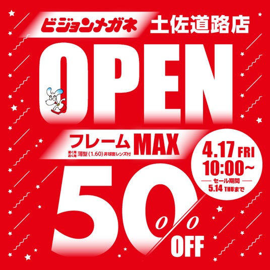 眼鏡専門店を運営する株式会社ビジョンメガネ(本社:大阪府大阪市)は、2026年4月17日(金)、高知県初出店となる「ビジョンメガネ土佐道路店」を、カメラのキタムラ高知・土佐道路店内にオープンいたします。