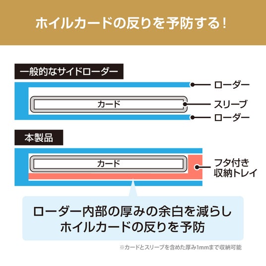 (カードとスリーブを含めた厚み1mmまで収納可能)