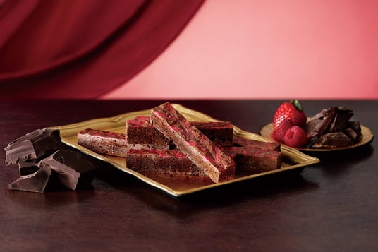 厳選した2種類のクーベルチュールチョコレートをブレンドした濃厚なブラウニーに、プチプチと弾ける食感のフリーズドライラズベリーを練り込んだ期間限定の味わいです。