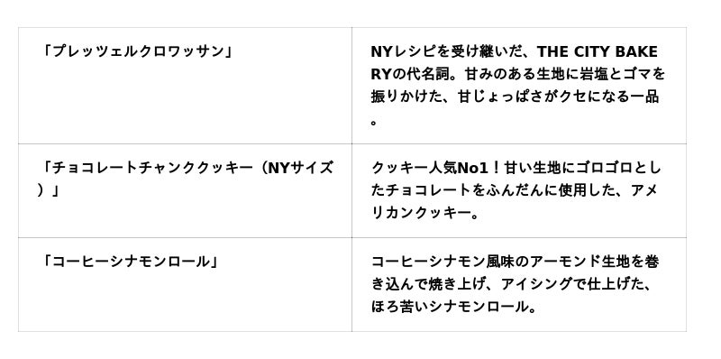 「THE CITY BAKERY」は1990年、ニューヨークに開業したベーカリー。創業者モーリー・ルービンはTV局のプロデューサーだった異色の経歴の持ち主で、その独創的な発想から生まれたプレッツェルクロワッサンや濃厚なホットチョコレートは、瞬く間にニューヨーカーから愛されました。日本では2013年に大阪に初上陸して以来、全国に展開。各地で「街(CITY)のベーカリー」として、その地域の皆さまから親しまれています。