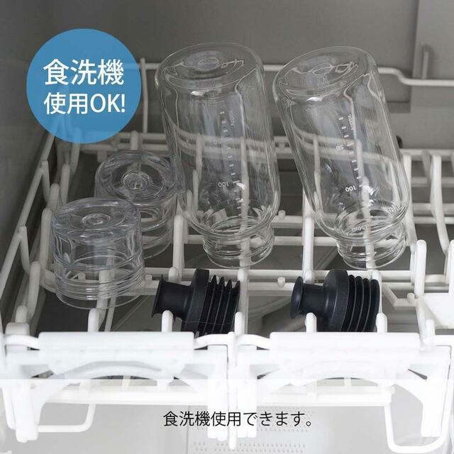 中身が見えるガラス製・密封できる注ぎ口とスムーズな注ぎ心地・食洗器・熱湯での洗浄も可能と、日常使いにうれしい要素が揃っています。