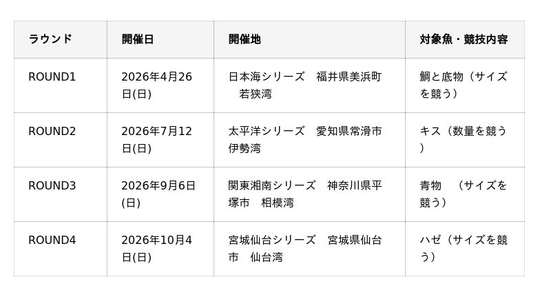 本イベントは、日本各地の海を舞台に全4戦で構成される年間リーグ戦で、各ラウンドの成績に応じたポイントの累計により年間チャンピオンを決定します。