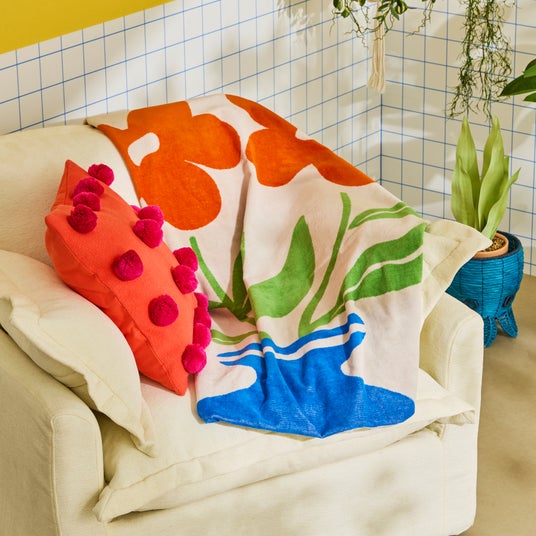 ジャカード織りで多彩な柄を表現した、お部屋を華やかに彩るタオルケットです。シャーリング仕上げにより、なめらかで心地よい肌触りを実現しました。ハーフサイズはひざ掛けとしても使用でき、エアコンの効いた室内でも快適に過ごせます。さっと1枚飾るだけで、日常の中に気軽にアートを取り入れられるアイテムです。