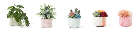 遊び心あるユニークなデザインのポットに入ったアートグリーンです。コンパクトなサイズでデスクやサイドテーブルにも取り入れやすく、お部屋のアクセントになります。水やりや温度管理の手間なく、真夏でも気軽にグリーンを楽しめます。