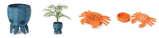 タコのフォルムが目を引く、遊び心溢れるバスケットです。