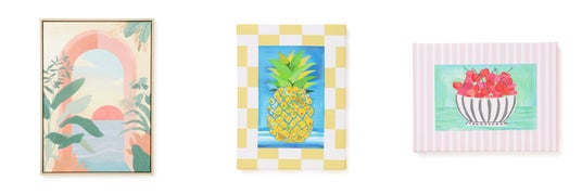 リゾート感あふれる空間を演出するアートボードです。インテリアの主役になる大きなアートボードは、お部屋に飾るだけで空間の印象をぐっと引き上げ、穏やかで心地よい雰囲気をもたらします。あわせて、棚の上や壁に気軽に飾れるコンパクトなアートボードも展開。パイナップルやチェリーなどのモチーフが遊び心をプラスし、空間に軽やかなアクセントを添えます。組み合わせて取り入れることで、奥行きのあるリゾートライクなコーディネートが楽しめます。
