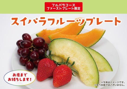 スイーツパラダイスでは、2026年4月8日(水)よりフルパラコースにて「ブランドいちご食べ放題 アールスメロン登場」を開催。本期間中は高級メロン「アールスメロン」が1stプレート限定で登場。