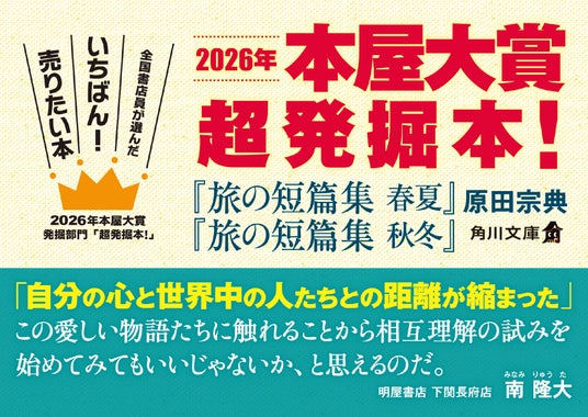 本日2026年4月2日(木)、2026年本屋大賞『発掘部門』の投票結果が公式サイトにて発表され、原田宗典氏のショート・ストーリー集『旅の短篇集 春夏』(角川文庫)が「超発掘本!」に選ばれました。