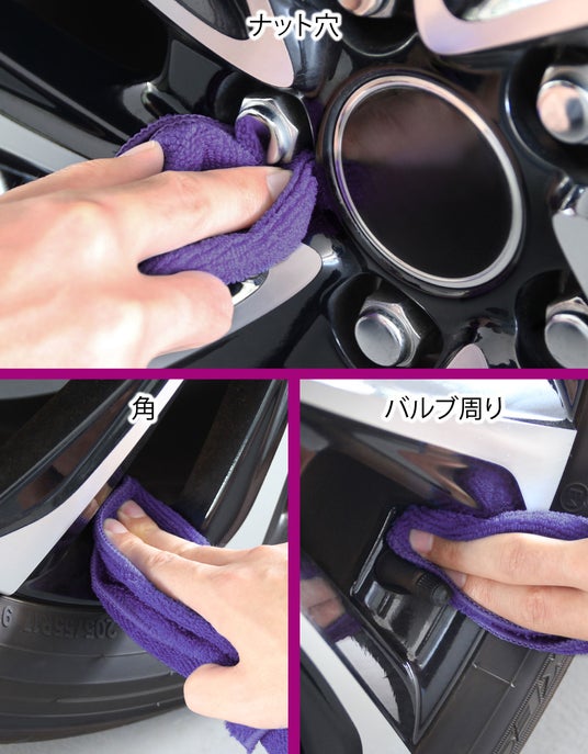 ブレーキダストなどの汚れの拭き取りから、水滴の拭き上げまで、1枚で完結