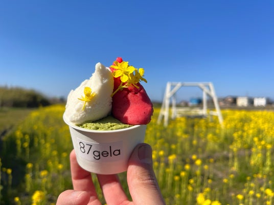 食用花専門農園87farm(ハナファーム)が手掛ける、お花の香りをジェラートに練り込み見た目にはエディブルフラワーをアレンジした、五感でお花を感じるジェラート専門店87gela(ハナジェラ)