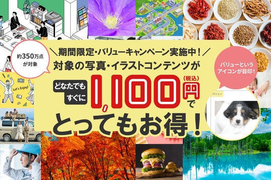 株式会社アフロ(代表取締役:青木紘二、以下「当社」)は、2026年4月1日より高品質なロイヤリティフリー(RF)コンテンツを“どなたでも1点1,100円(税込)”で利用できる「バリューキャンペーン」 の提供を開始いたします。