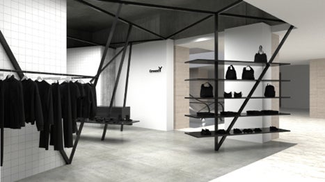 店舗デザインは、白いタイルに黒いフレームが重厚感を加え、白と黒のコントラストが際立つ空間に仕上がりました。革新的でありながら、親しみやすいファッションへのアプローチを体現するGround Yの哲学を多面的に表現しております。心斎橋PARCOでの新たな空間にて、ブランドの世界観を引き続き提案してまいります。