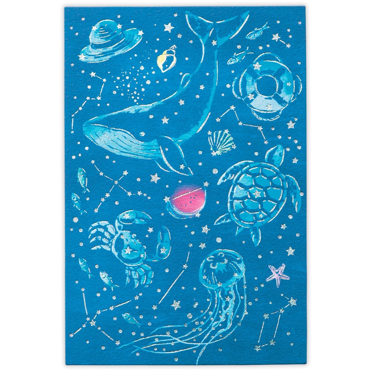 ホログラム箔とグレイニング加工を施した、特別感のある一枚入りポストカードが仲間入り。全面に絵柄が入った華やかな仕上がりなので、夏のご挨拶はもちろん、インテリアとして飾るのもおすすめです。