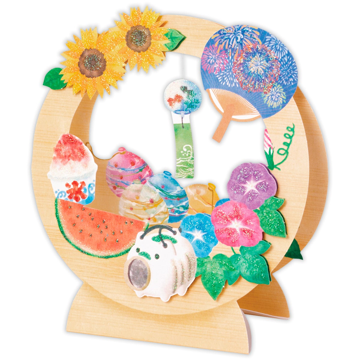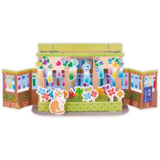 夏の情景をカードに閉じ込めた人気の風景型立体シリーズに、風鈴市をテーマにしたデザインが登場。細かい部分までモチーフが描き込まれており、いろんな角度から見て楽しむことができます。