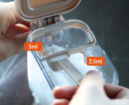 すり切り板を使えば小さじ(5ml/2.5ml)が簡単に量れるので、調味料を正しい分量で取りたいときに活躍します。