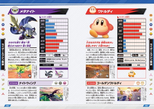 縦横無尽にコースを走って飛んで、敵やライバルを攻撃! マシンの操作をマスターして、最強最速のエアライダーを目指せ! 全21人のライダーと全28台のエアライドマシンの解放条件をぜんぶ見せ。ライダー&マシンの能力・性能のグラフで、個性や特徴がよくわかる。「カービィ」シリーズでおなじみ、全17種類のコピー能力もバッチリ。