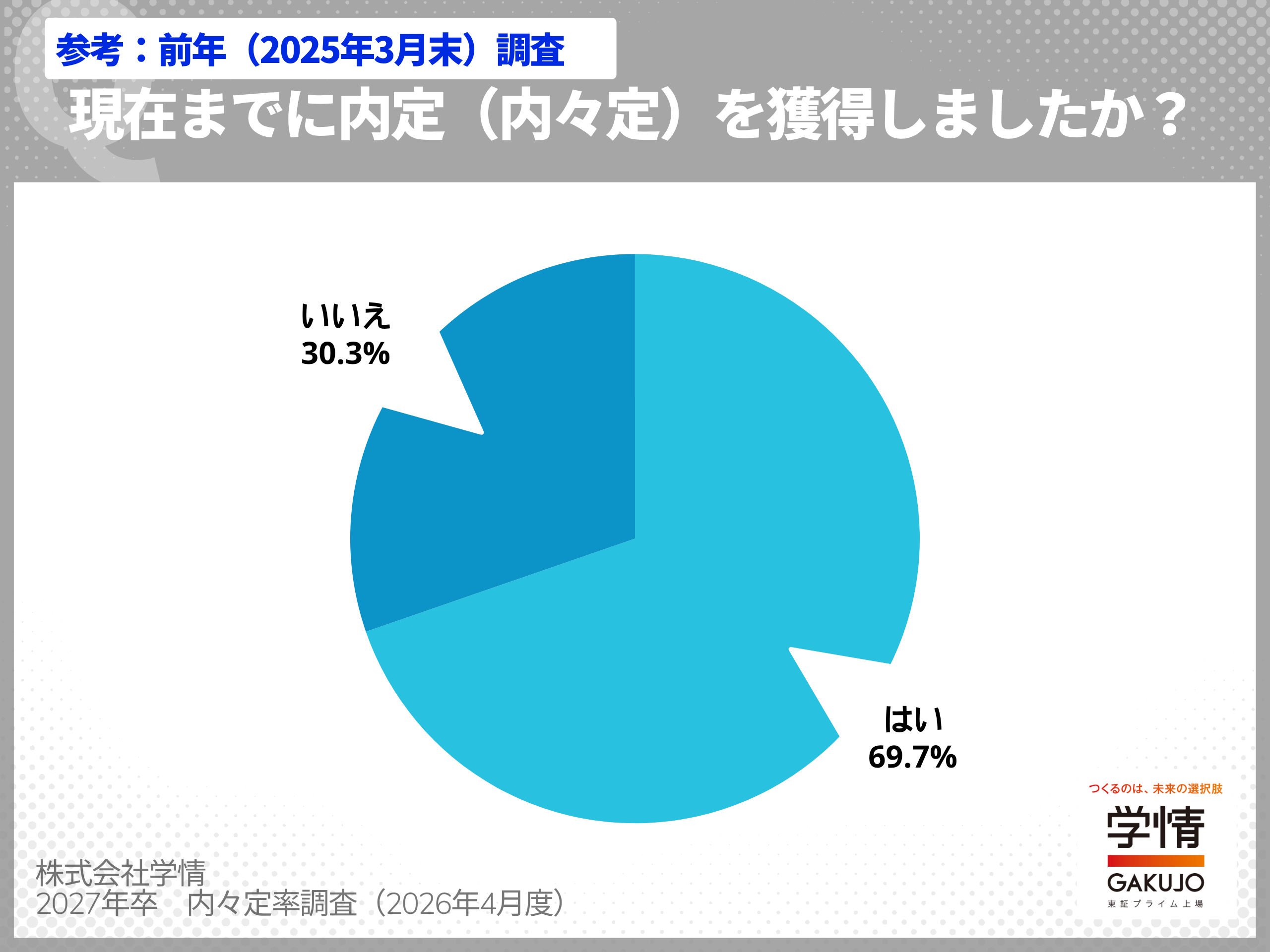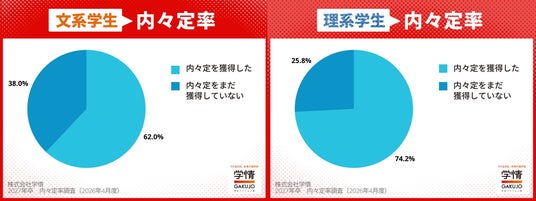 株式会社学情(本社:東京都中央区)は、2027年3月卒業(修了)予定の大学生・大学院生を対象に、最新の「内々定の獲得状況」についてインターネットアンケートを実施しました。