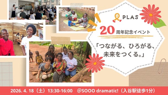 認定NPO法人PLASは、2026年4月18日に20年間のアフリカ子ども支援と国際協力の歩みをふり返りながら、これからの未来をともに考えるイベントを開催します。