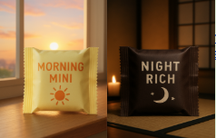 A:朝と夜とで自身が置かれている心理的状況が異なるため、それぞれの場面に適した甘さの チョコを食べることで最適な気分転換ができそうだから