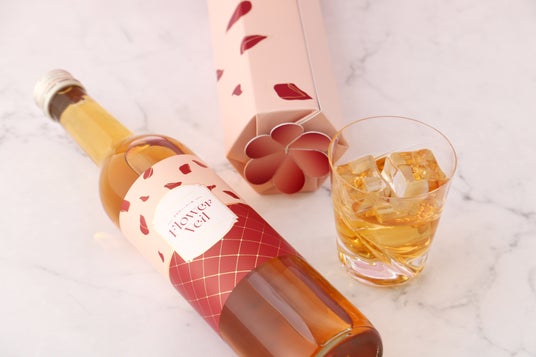 「フラワー・ベール -花と梅酒-」は、花びら型の化粧箱に包まれた、ギフトに最適な本格梅酒です。奈良県産の青梅を半年以上漬け込み、桃や杏を思わせる芳醇な香りとジューシーな味わいに仕上げました。箱を開ける瞬間から楽しめる、ギフトにぴったりな梅酒です。