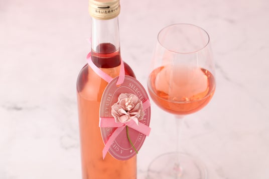 洗練された造花のタグラベルを添えた、花とともに贈れるロゼワインです。山梨県産ぶどうを主体に、赤ワインをブレンドして色鮮やかに仕上げています。ベースとなる辛口の味わいに、ブレンドされた赤ワイン由来の甘みが重なります。