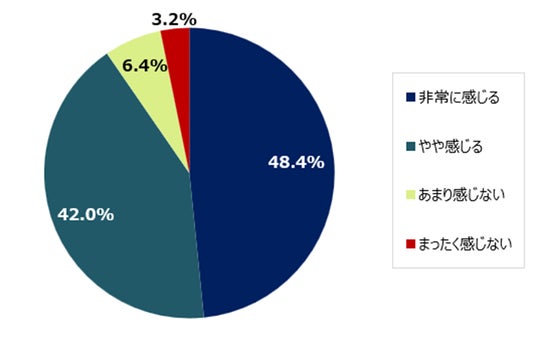 預貯金だけで将来に備えることへの不安は非常に強く、「非常に感じる」「やや感じる」あわせて90.4%を占めており、前述の物価高負担を感じる割合とほぼ同値となっています。現在の社会環境では、現金中心の備えだけでは十分ではないという認識が広く浸透している様子がうかがえます。