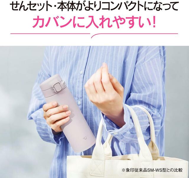 さらに、象印独自の内びん構造「サーモリング構造」と「ステンレス真空二重構造」により、飲みごろの温度を長時間キープ。温かい飲み物も冷たい飲み物も、外出先でしっかり楽しめます。