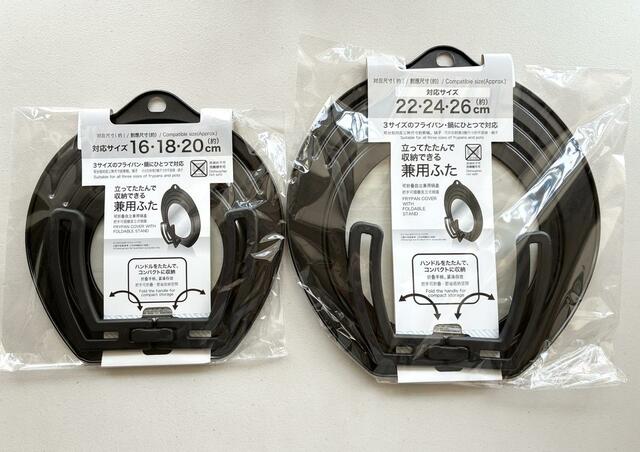 16㎝から26㎝までのフライパンとお鍋のフタだって、この2枚だけでカバーしてくれるんです。