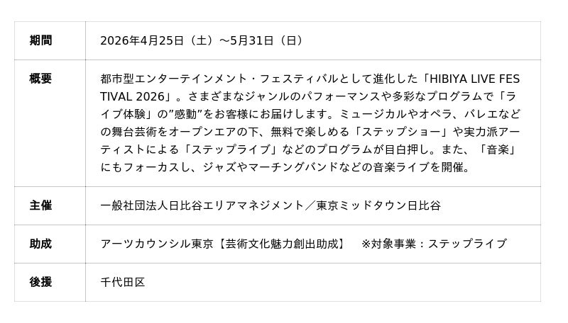 ◎HIBIYA LIVE FESTIVAL 2026概要
