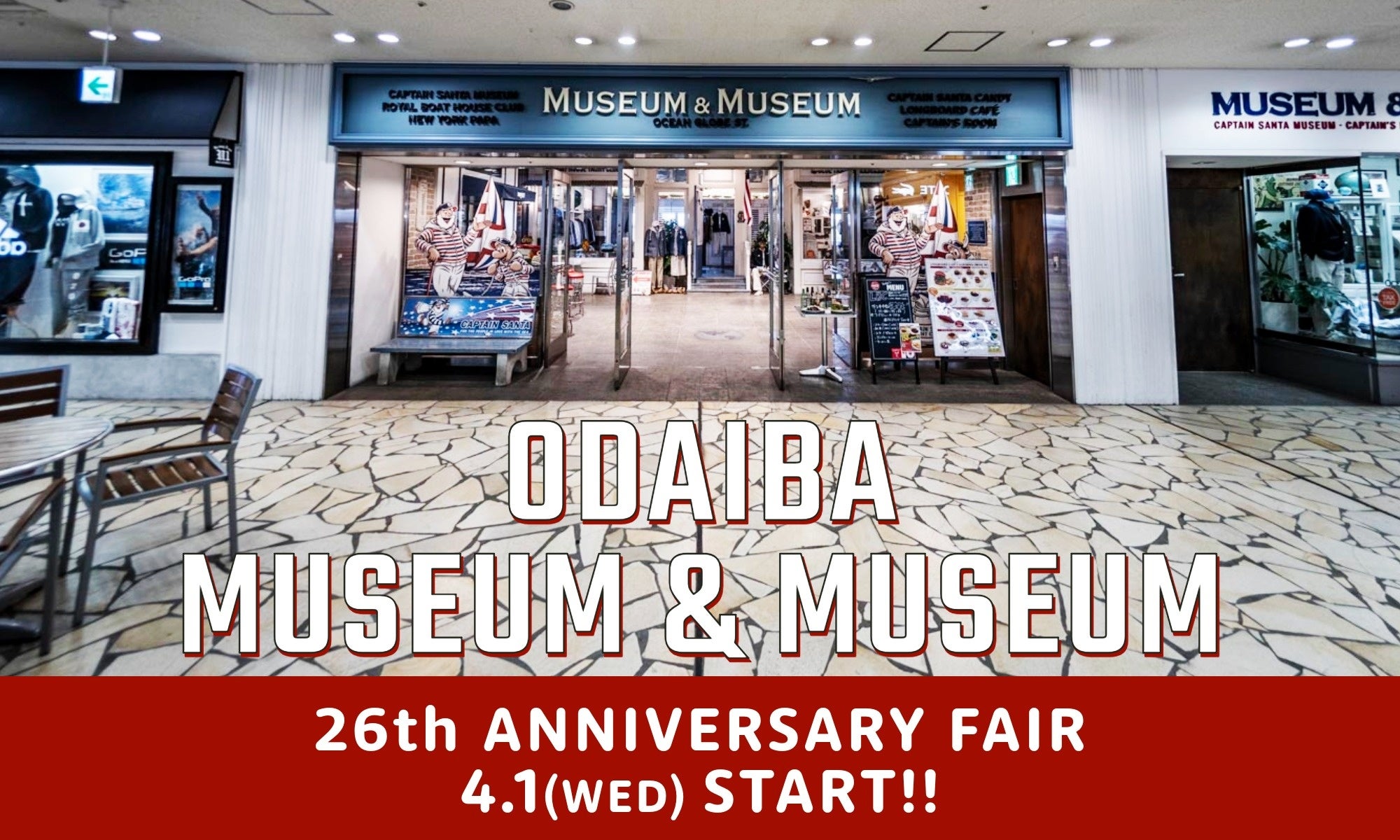 株式会社ジョイマーク・デザイン(本社:東京都江東区、代表取締役:下山 好誼)は、40年にわたり愛され続けている「キャプテンサンタ」や、80年代に一世を風靡した「ボートハウス」などを手がける、日本の老舗アパレルカンパニーです。このたび当社の全ブランドを取り扱う旗艦店、お台場「MUSEUM & MUSEUM」は、2026年で26周年を迎えます。日頃のご愛顧への感謝を込めて、2026年4月1日(水)より周年限定アイテムの販売と特別企画を実施いたします。
