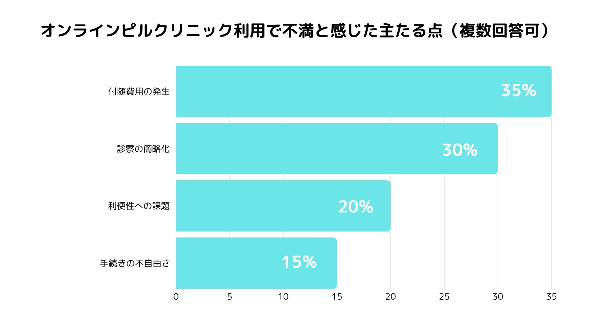 - オンライン診療の利便性(45%): 通院負担の解消、待ち時間の消失、即日発送に対する高い評価。