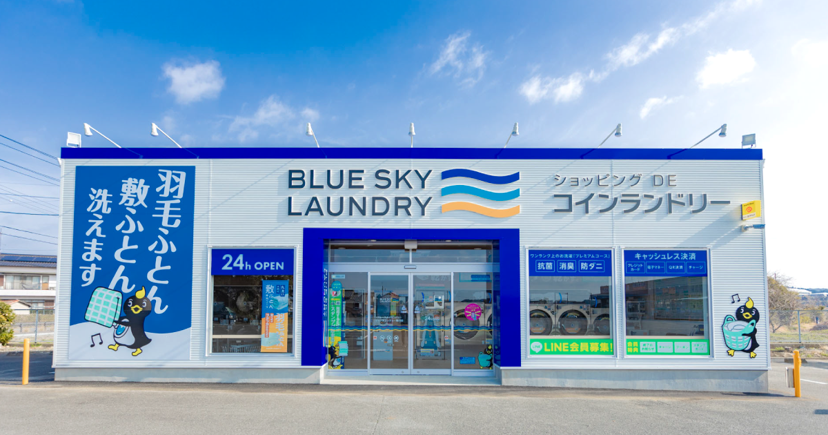 ブルースカイランドリーは、「コインランドリーのあるライフスタイル」をコンセプトに、大型洗濯・乾燥機による時短と清潔な店舗運営を通じて、家事負担の軽減と時間の有効活用を実現しています。