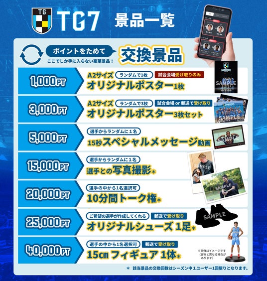 貯めたポイントは、TG7限定のオリジナル景品と交換できます。