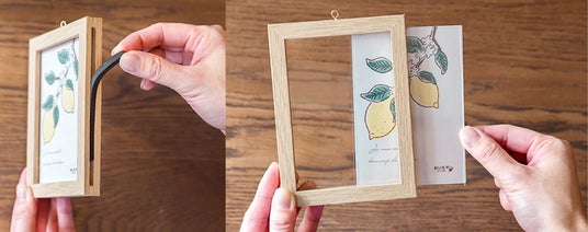 L判サイズ(8.9×12.7cm)の写真を入れられます。表裏とも側面から入れ替え可能で、お好きな写真を飾ることができます。