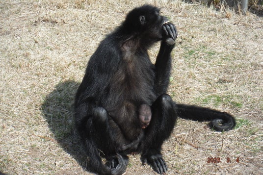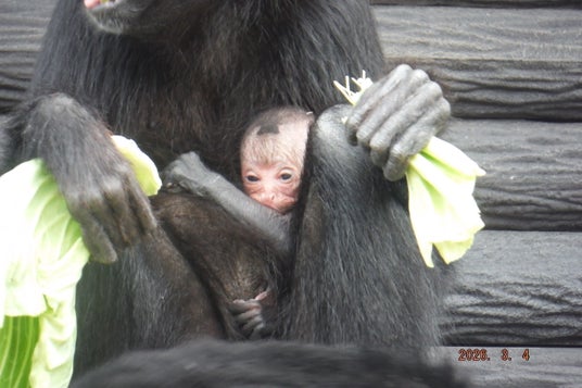 顔を見せるクモザルの赤ちゃん