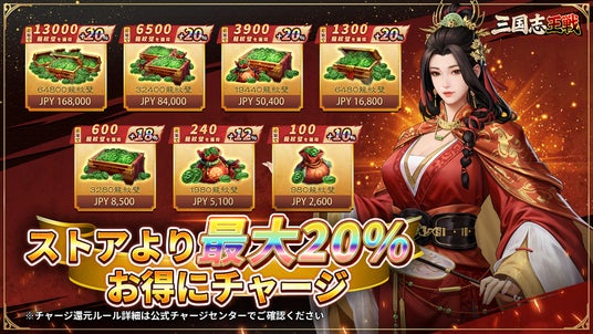 BBGameは、配信中の三国戦略SLG『三国志王戦』において、プレイヤーへの還元を目的とした「公式チャージセンター」を開設し、限定キャンペーンを開始したことを発表しました。