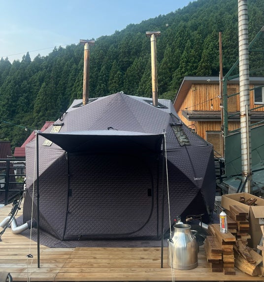野沢温泉の雪溶湧き水をそのまま流し込んだ天然水風呂で整うテントサウナ