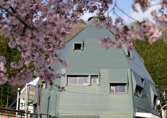「野沢温泉ロッヂ」は、1969年にル・コルビュジエの薫陶を受けた建築家・吉阪隆正氏が設計した歴史的建造物です。特徴的な緑の屋根とたまご型のドーム建築が目を引き、ゲレンデから徒歩1分の長坂ゴンドラ近くに立地しています。