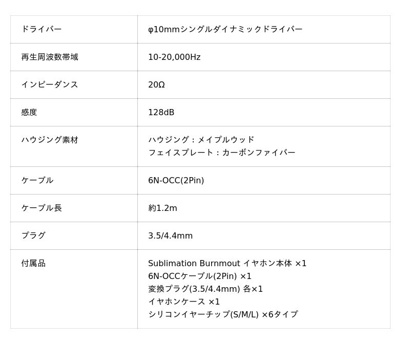 通常モデルのSublimation同様、N52スーパーリニアデュアル磁気回路を採用したφ10mmシングルダイナミックドライバー構成です。