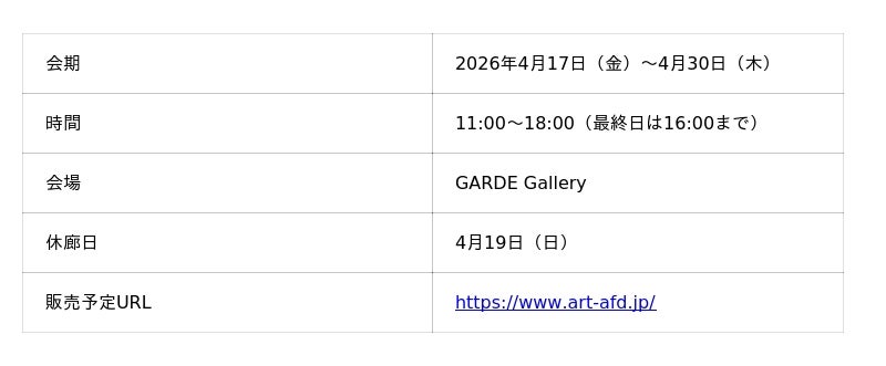 ADF(NPO青山デザインフォーラム)は、アート展「ADF Art Gallery Project」の41回目として、アーティスト山ノ内陽介による「山ノ内陽介」展を2026年4月17日(金)から4月30日(木)まで、表参道のGARDE Galleryで開催いたします。
