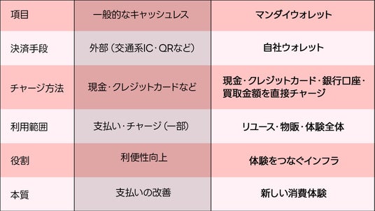 いま、生活者の間では節約志向が高まる一方で、日々の中でちょっとした楽しさや気分転換も求められています。「マンダイウォレット」は、その両方に応えるサービスです。一般的なクレジットカードやキャッシュレス決済は、主に「支払いを便利にする」ための手段です。一方で「マンダイウォレット」は、買取金額を起点に、遊びと買い物まで店内で完結させる仕組みとして設計されています。