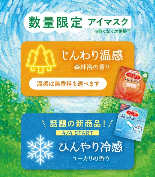 近年は、春先から気温が上昇する日も増えています。めぐりズムの新商品「冷感めぐ落ちアイマスク」の登場で、ひんやり心地の良い新しいケアが選べるようになります。