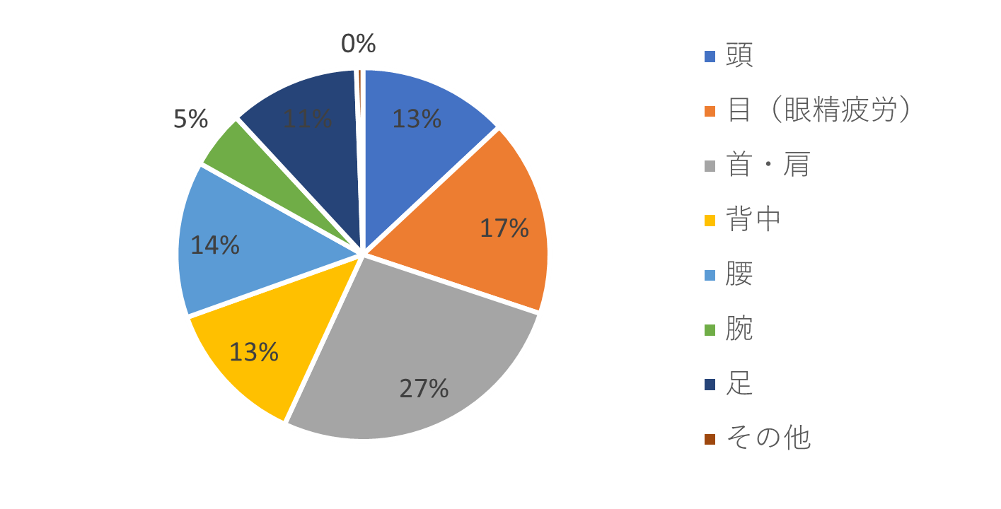 当社が実施したお客様アンケートでも、「首・肩・目・頭」など、上半身に疲れを感じている方が多い傾向が見られました。