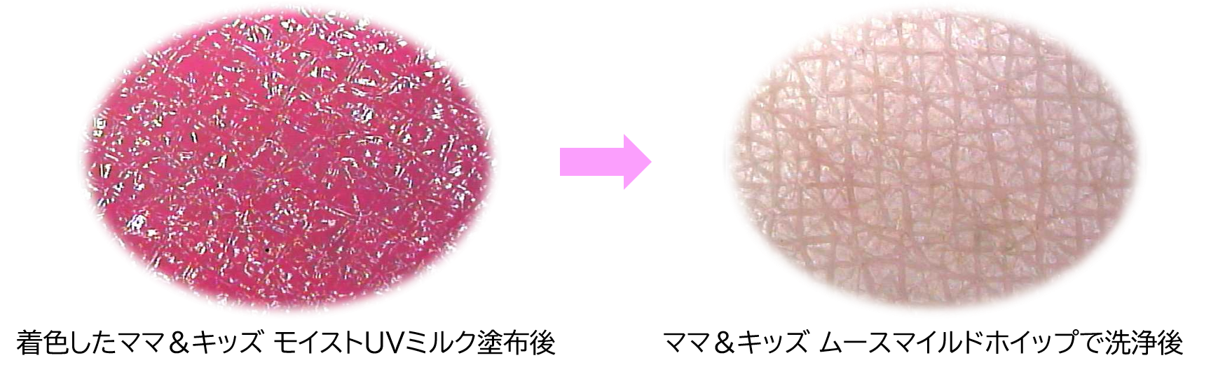 同シリーズのママ&キッズ ムースマイルドホイップのみできれいに落とせます。泡を広げて馴染ませるだけでOK。ゴシゴシこすらずに落とすことができるから、肌への負担が少なく、安心して使えます。