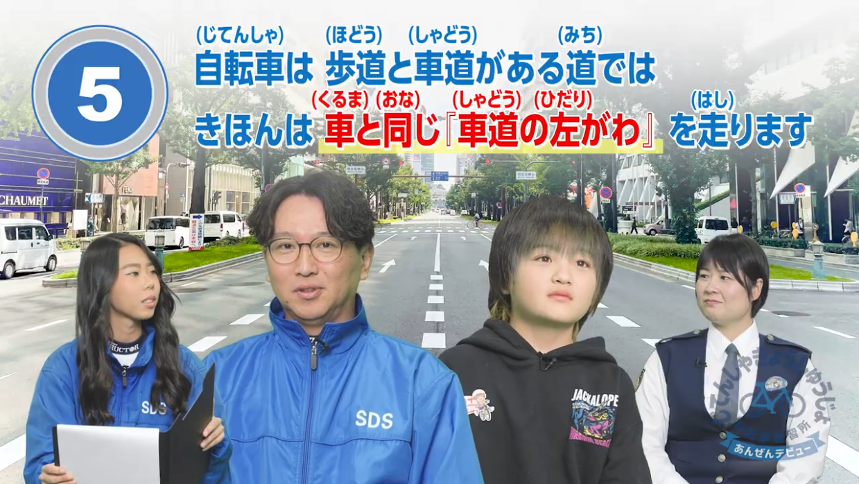 動画はクイズ形式を取り入れた構成となっており、自転車利用時の交通ルールや危険ポイントを分かりやすく学べる内容となっています。